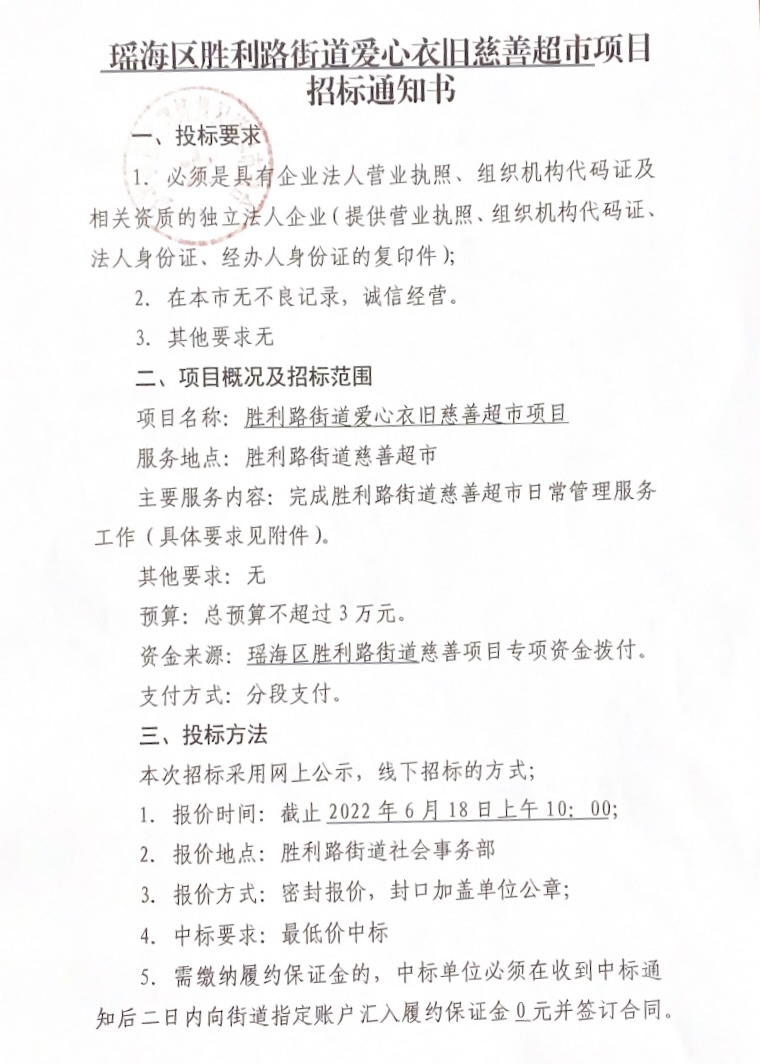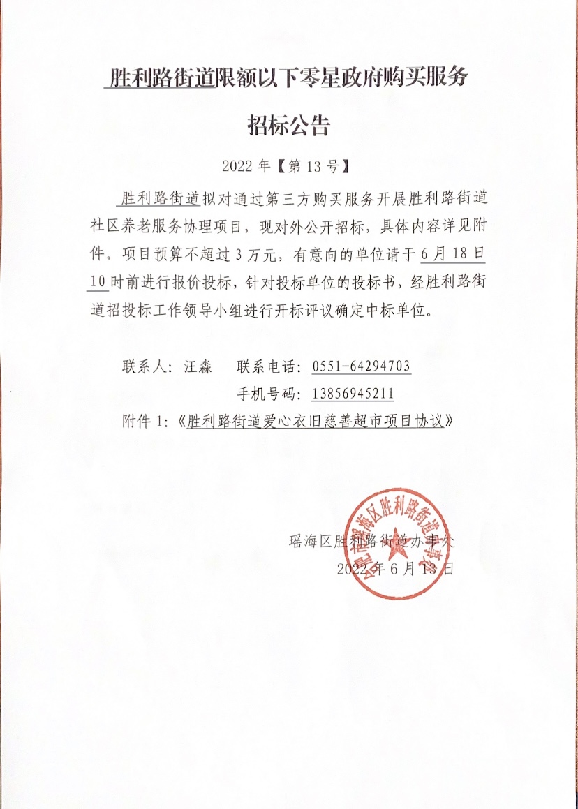 2022年第13号胜利路街道限额以下零星政府购买服务招标公告
