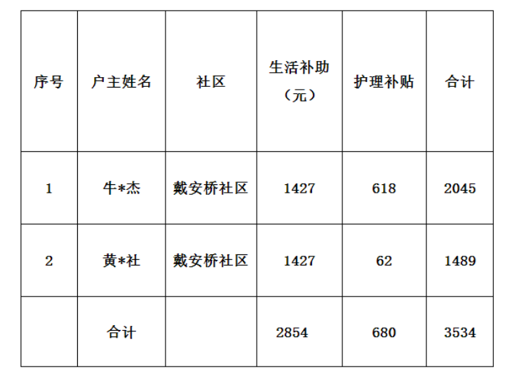 胜利路街道2024年11月特困供养生活补助发放花名册