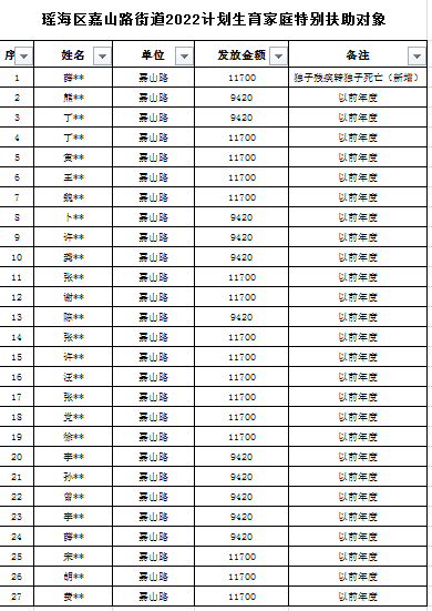 瑶海区嘉山路街道2022年计划生育家庭特别扶助对象分配结果 |