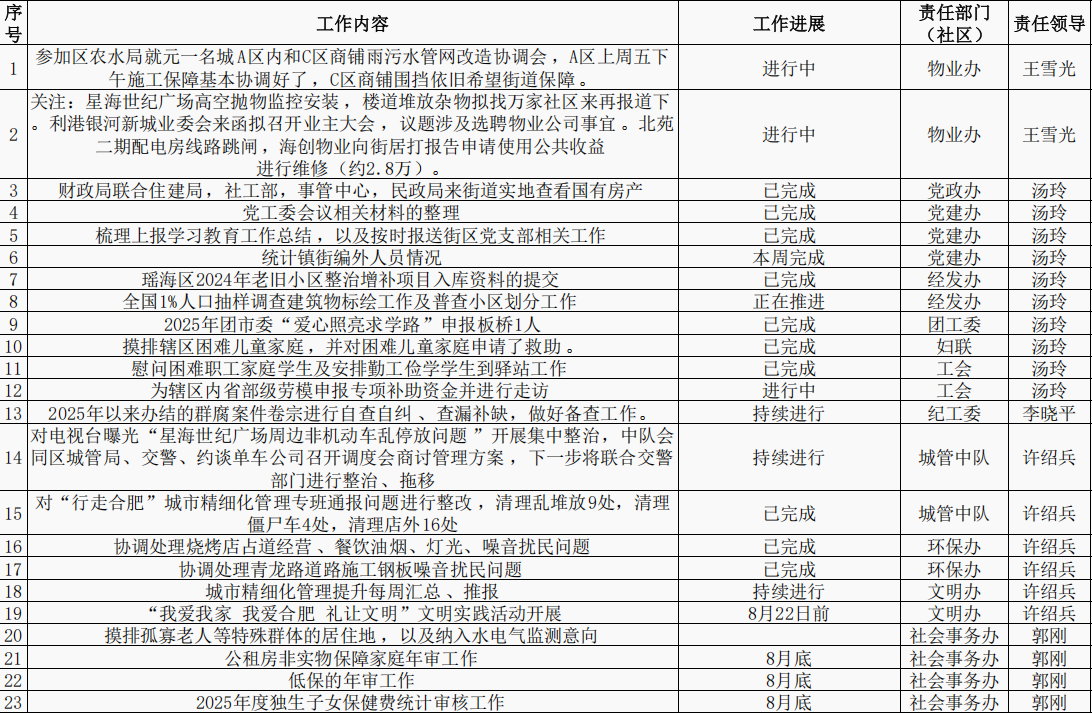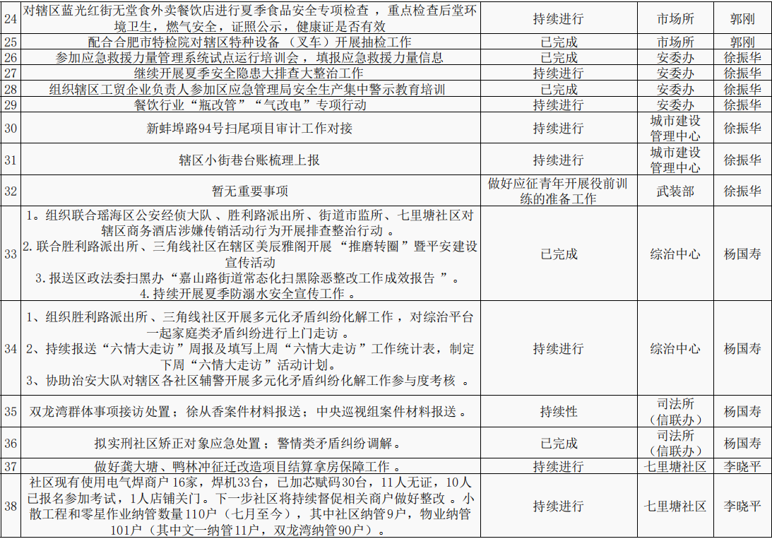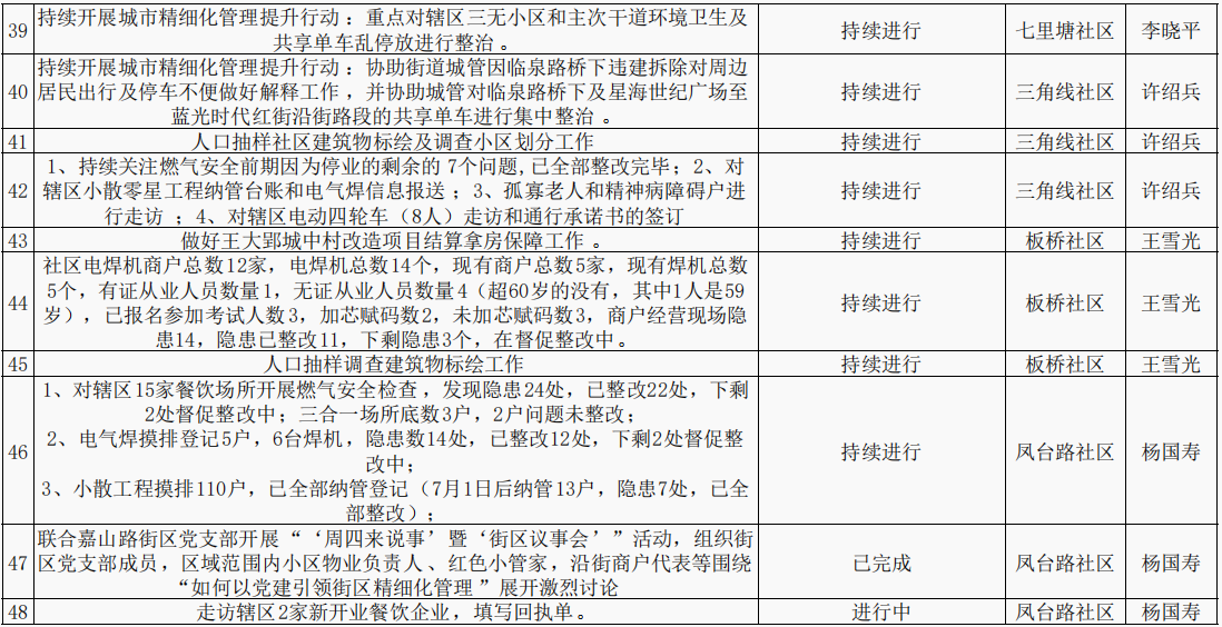 【重点工作任务进展情况】嘉山路街道第三季度重点工作进展情况