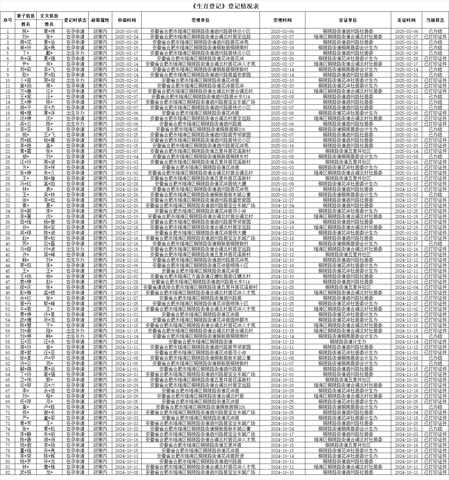 【服务办理结果】铜陵路街道2024年10-12月生育证登记情况
