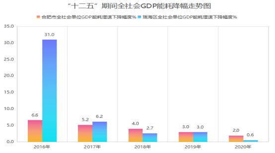 2016年-2020年,瑶海区大刀阔斧的削减工业产能,全社会GDP能耗累计下降39.5%,用5年的时间完成了十年的降幅空间,不仅确保了全市节能减排任务的圆满完成,也为兄弟县区的节能降耗任务争取到了缓冲的空间,实现错位发展。瑶海区作为节能减排的先进单位,为全市的节能减排工作交出了一份出色的成绩单,承载荣誉的背后,付出的是工业经济发展的莫大牺牲。