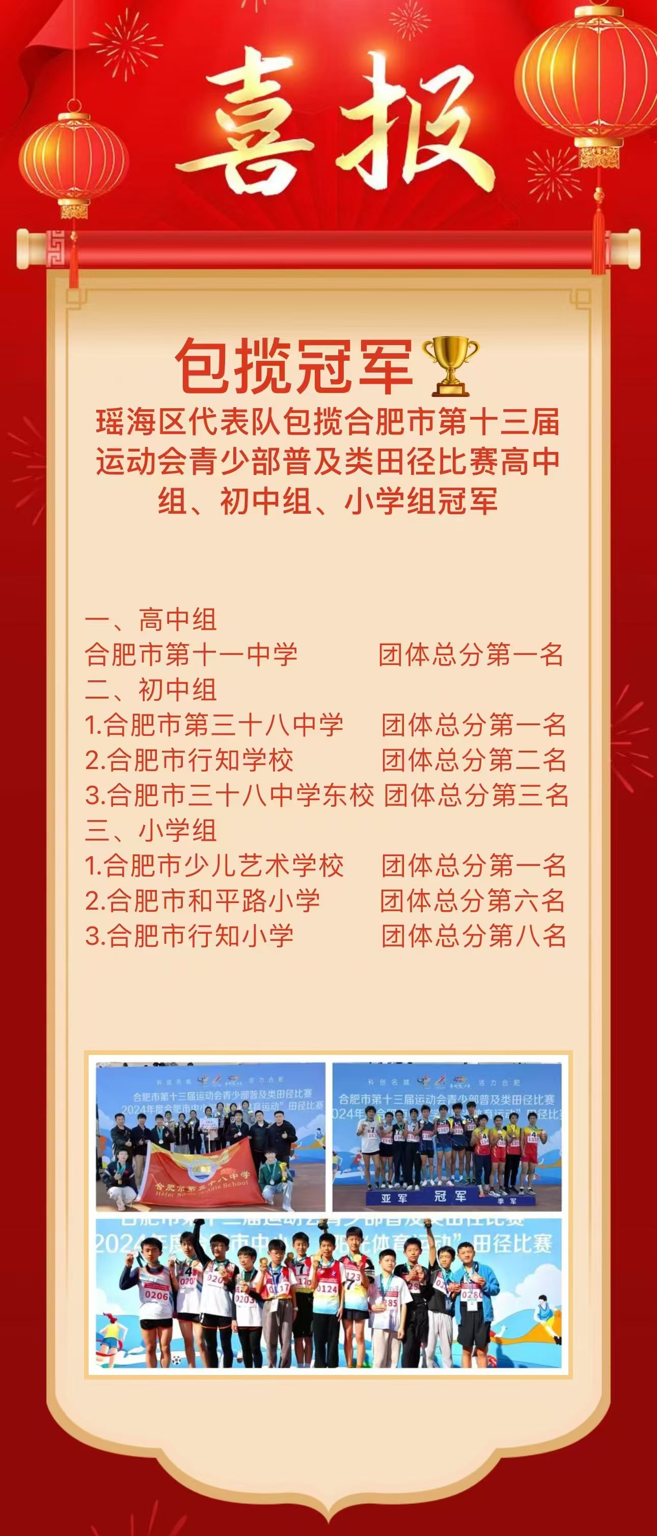 【赛事活动】瑶海区代表队包揽合肥市第十三届运动会青少部普及类田径比赛高中组、初中组、小学组冠军 |
