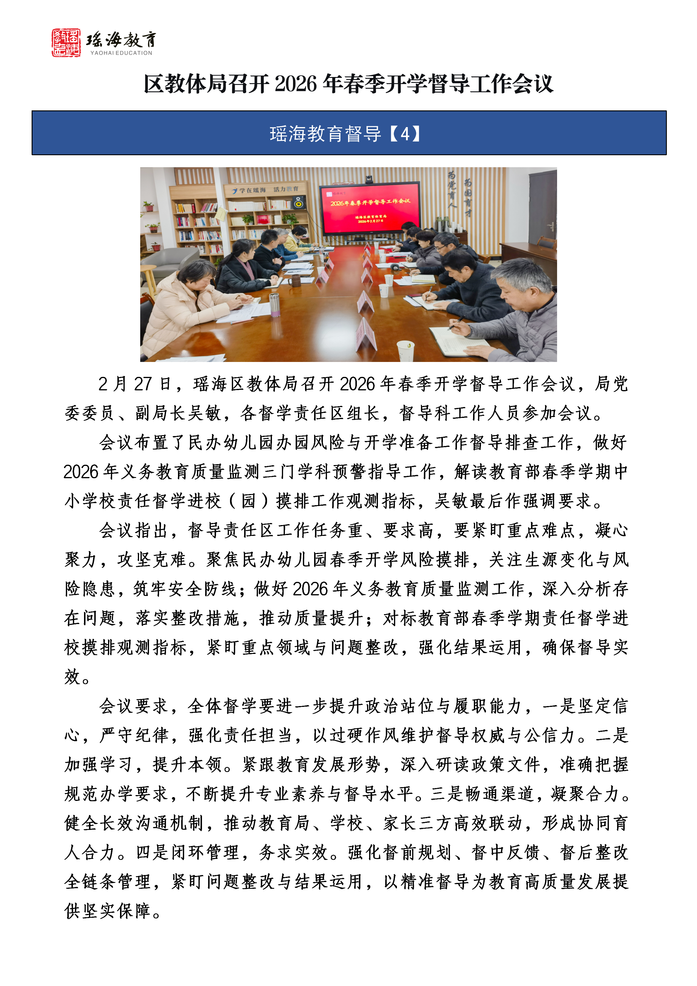 【督导信息】区教体局召开2026年春季开学督导工作会议 |
