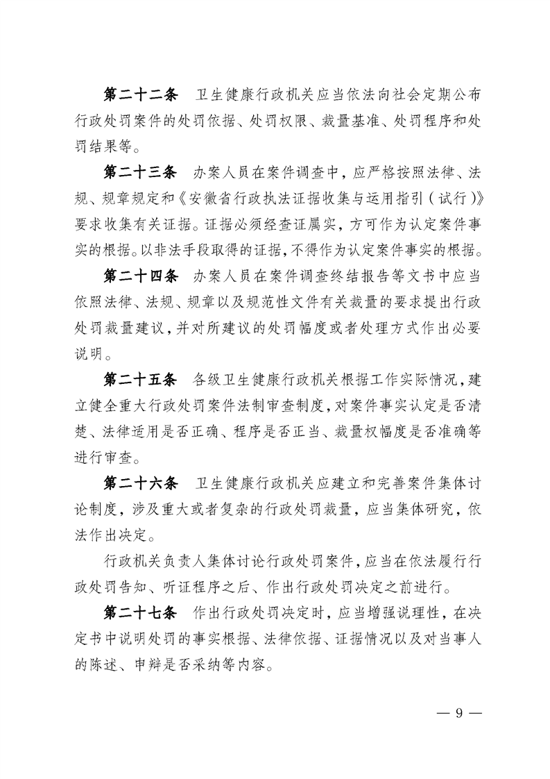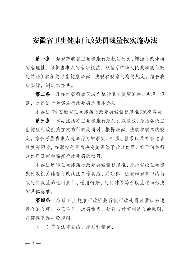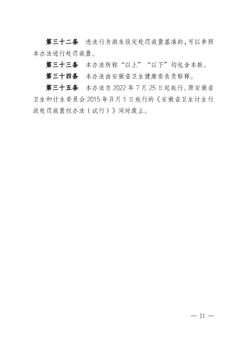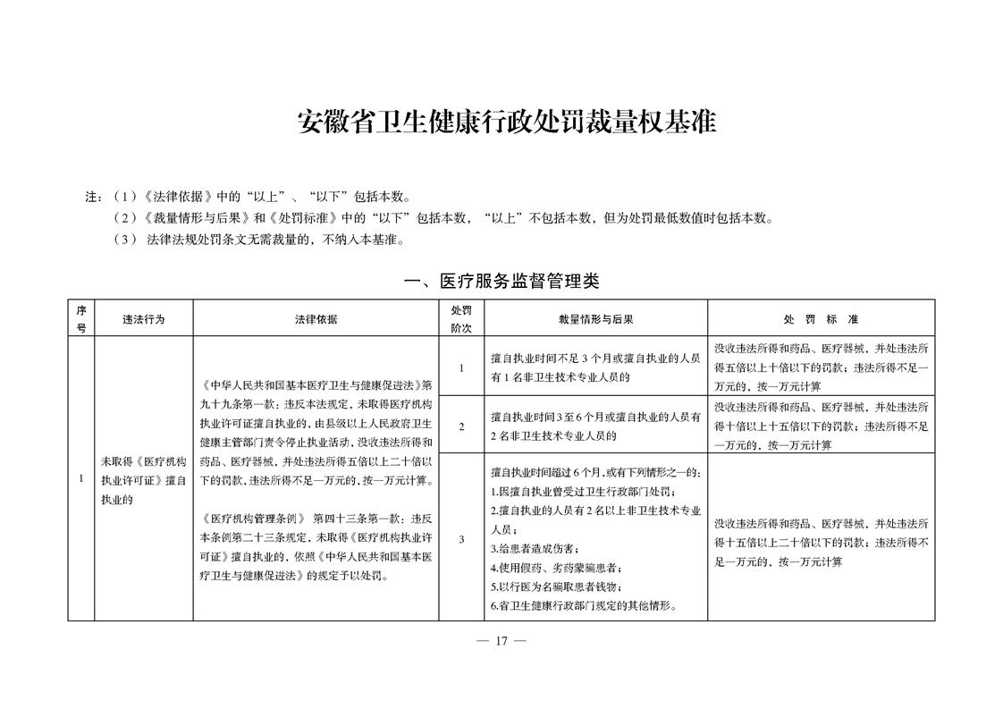 【行政裁量基准】安徽省卫生健康行政处罚裁量权实施办法 |