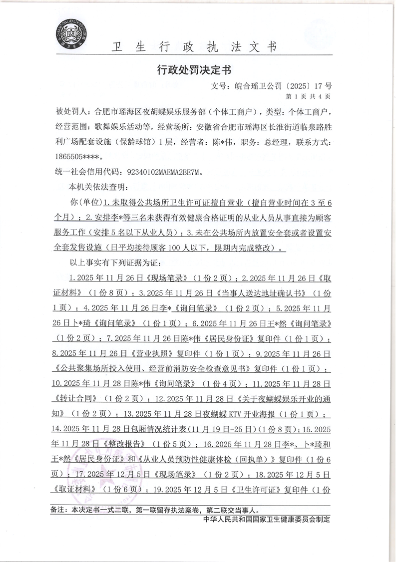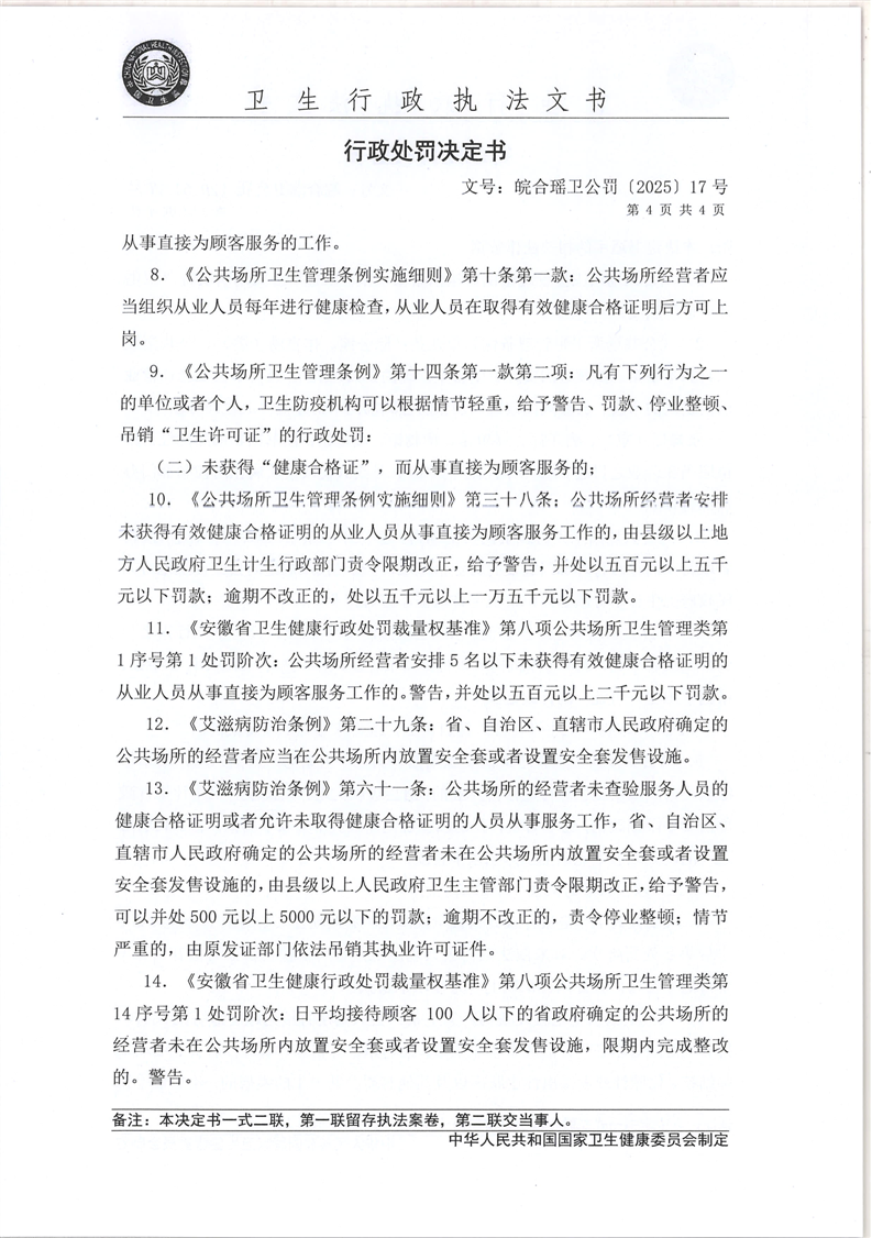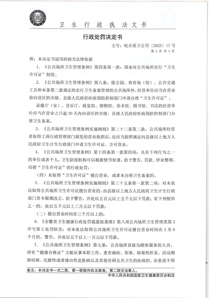 【行政处罚决定书】皖合瑶卫公罚〔2025〕17号 |