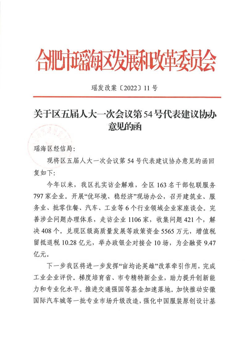 关于区五届人大一次会议第54号代表建议协办意见的函 |