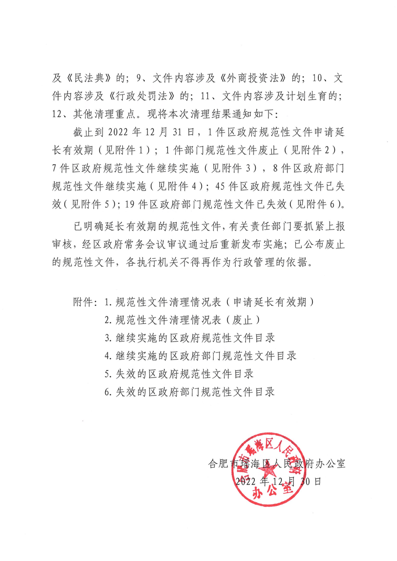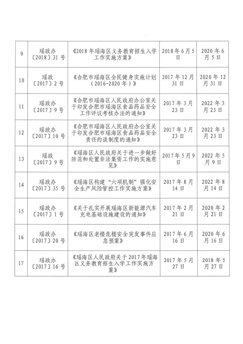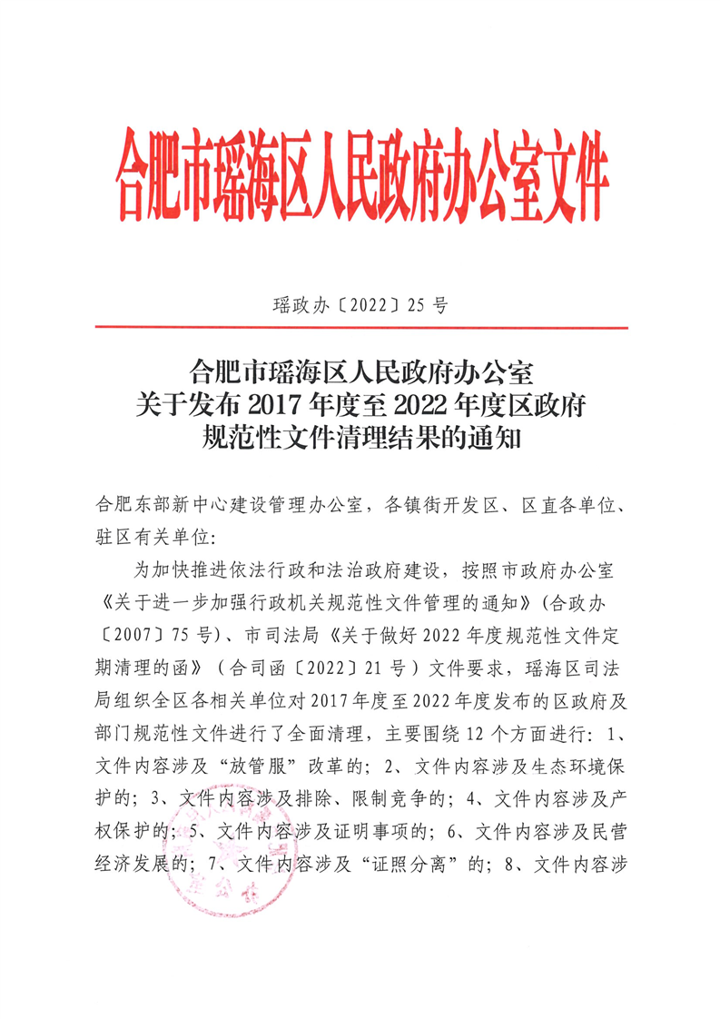 合肥市瑶海区人民政府办公室关于发布2017年度至2022年度区政府规范性文件清理结果的通知 |