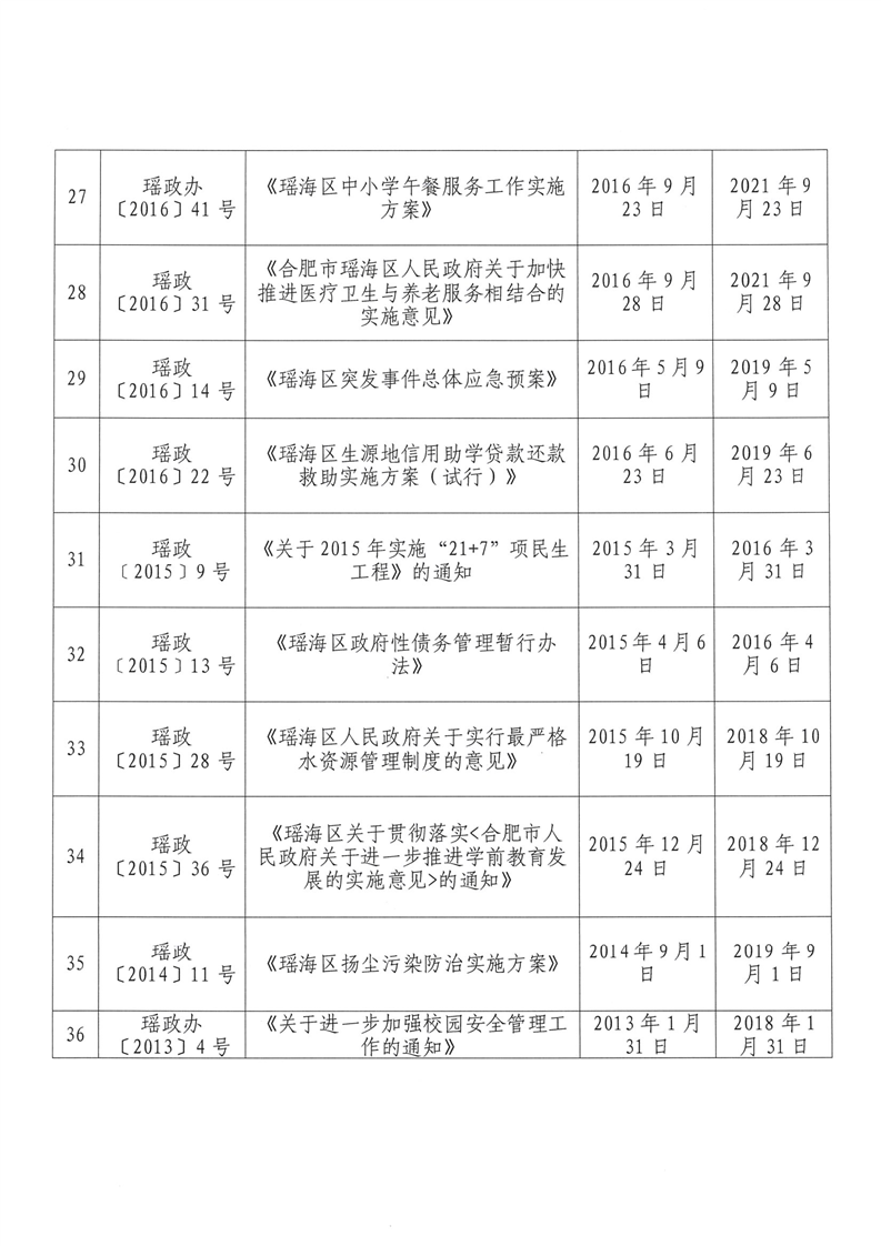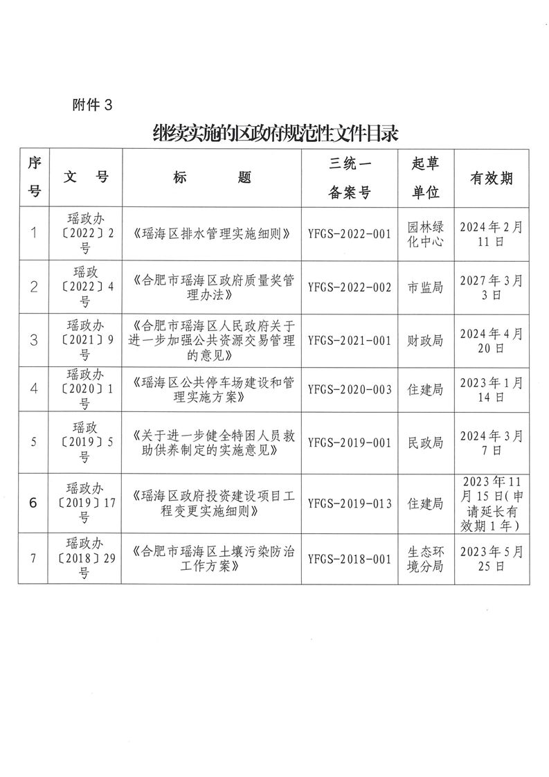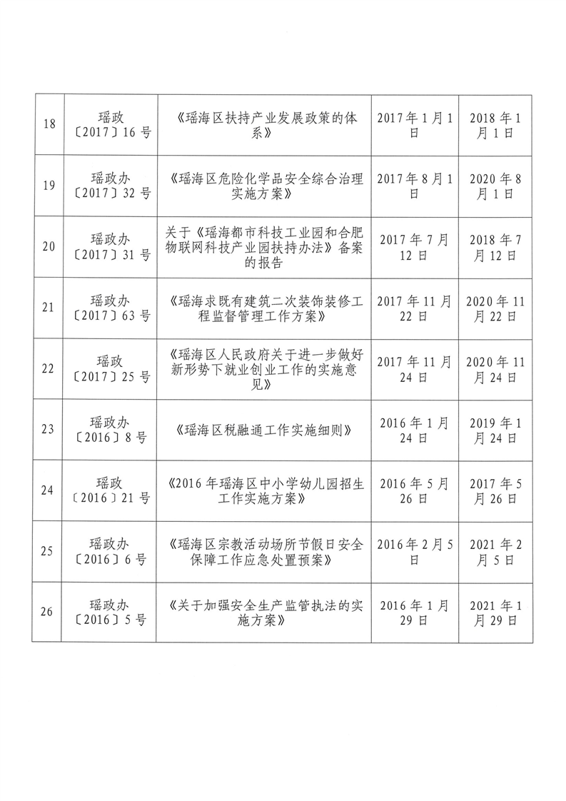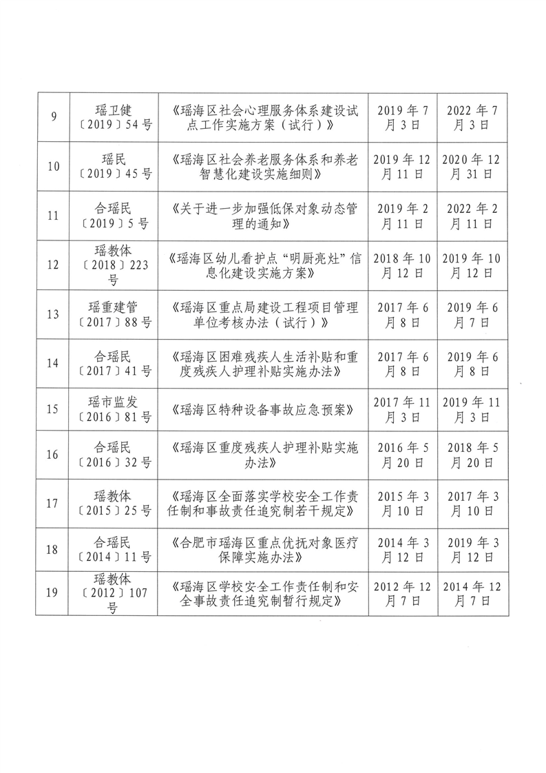 合肥市瑶海区人民政府办公室关于发布2017年度至2022年度区政府规范性文件清理结果的通知 |