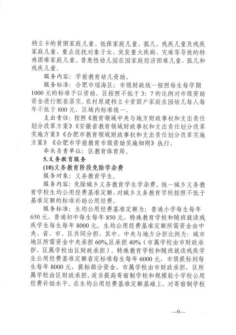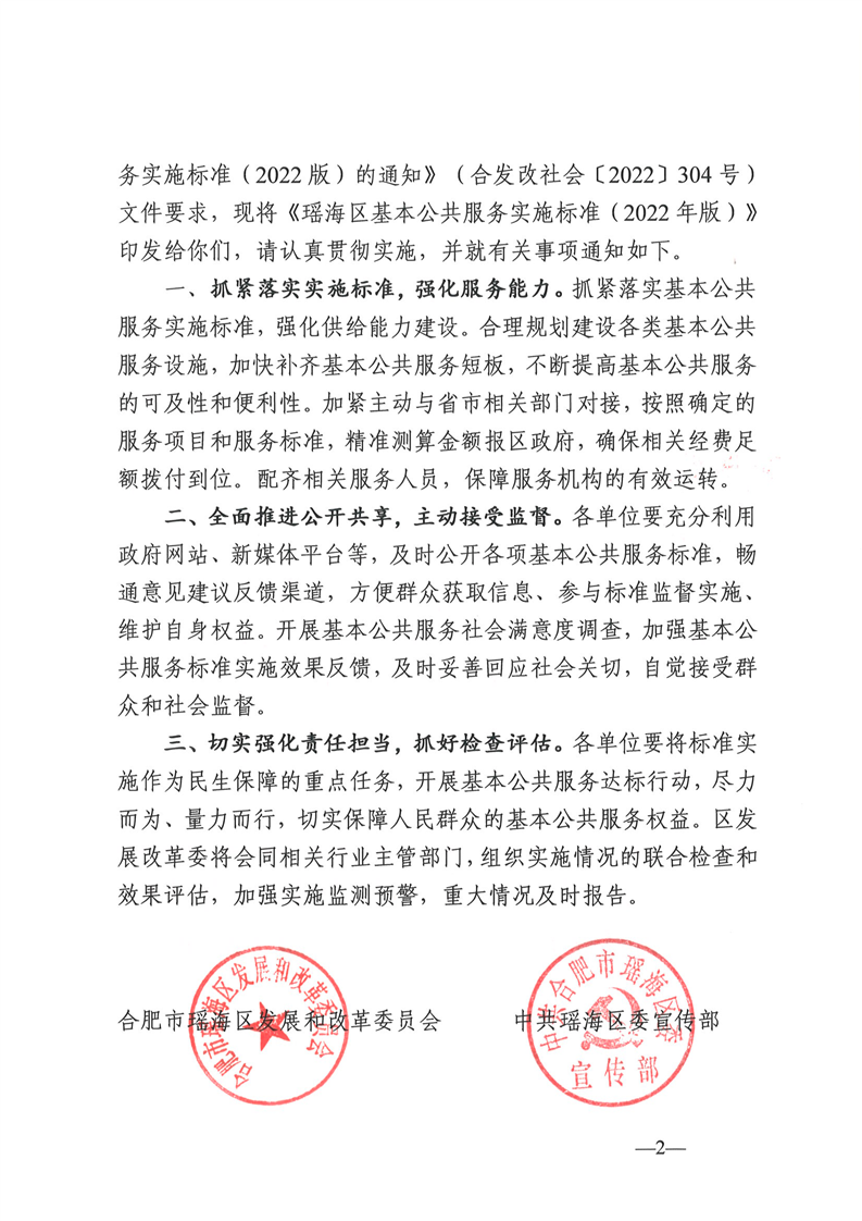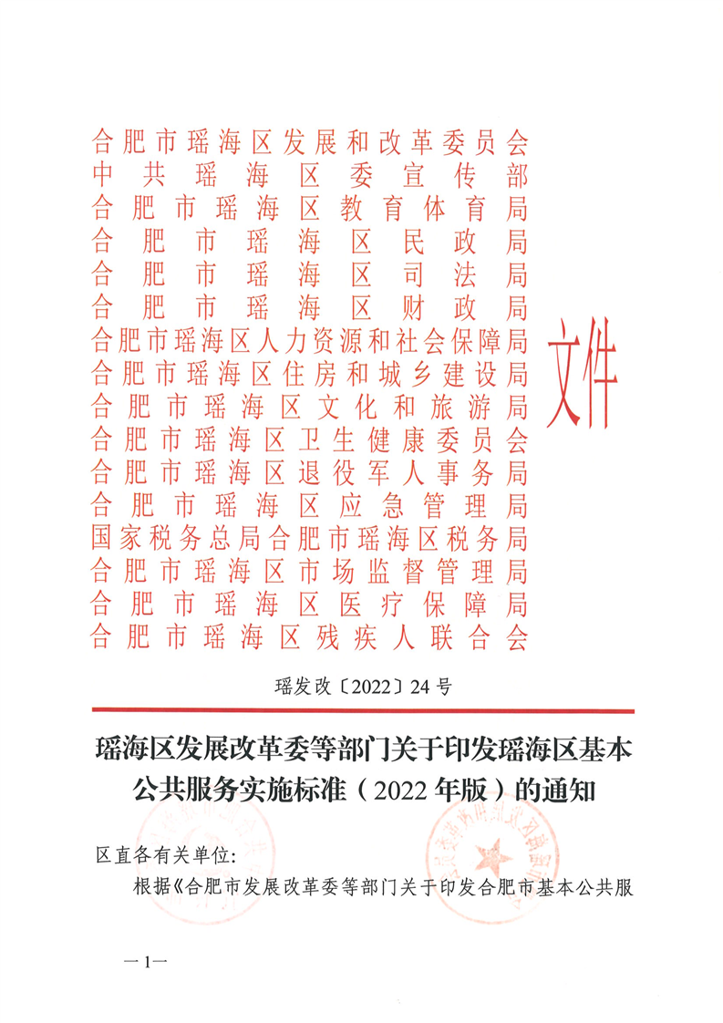 关于印发瑶海区基本公共服务实施标准(2022年版)的通知 |