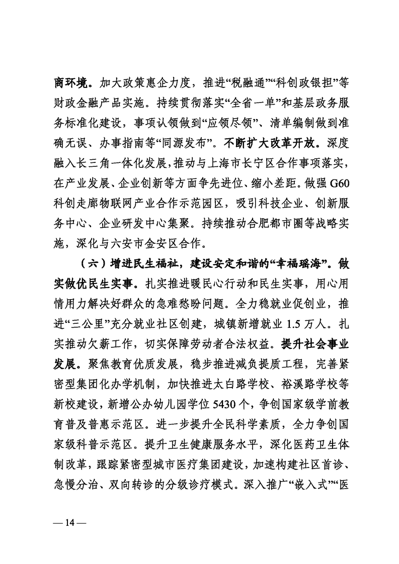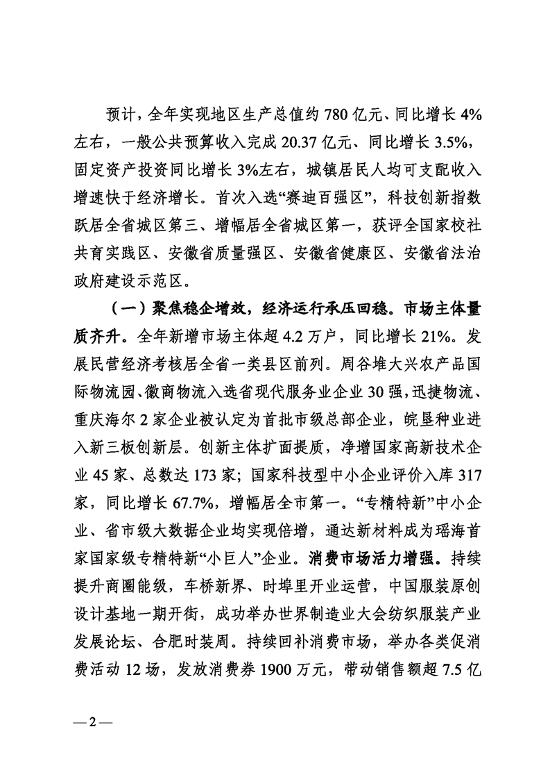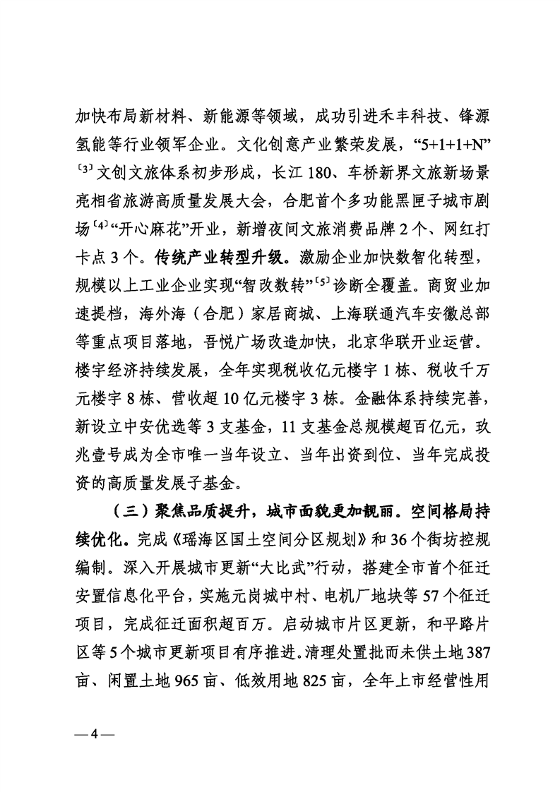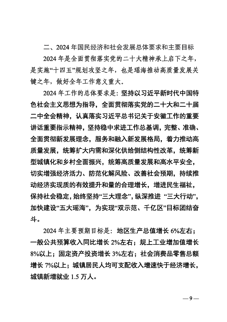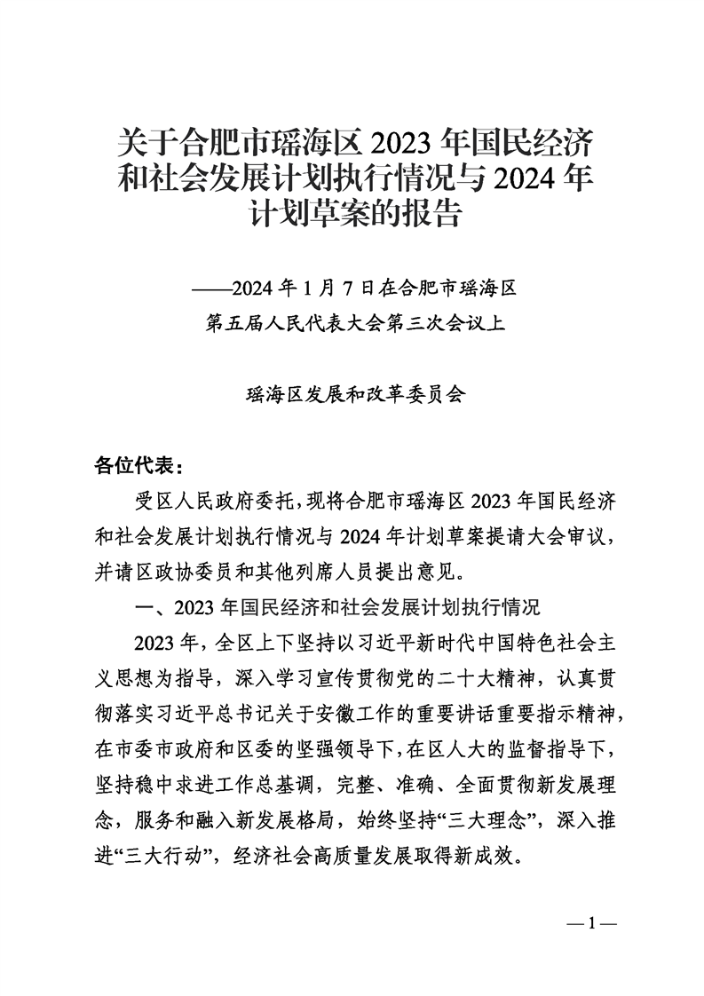 关于合肥市瑶海区2023年国民经济和社会发展计划执行情况与2024年计划草案的报告 |
