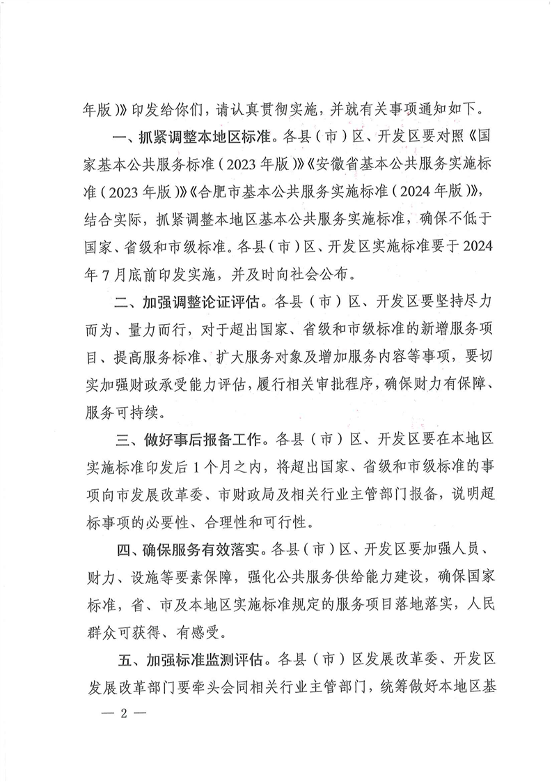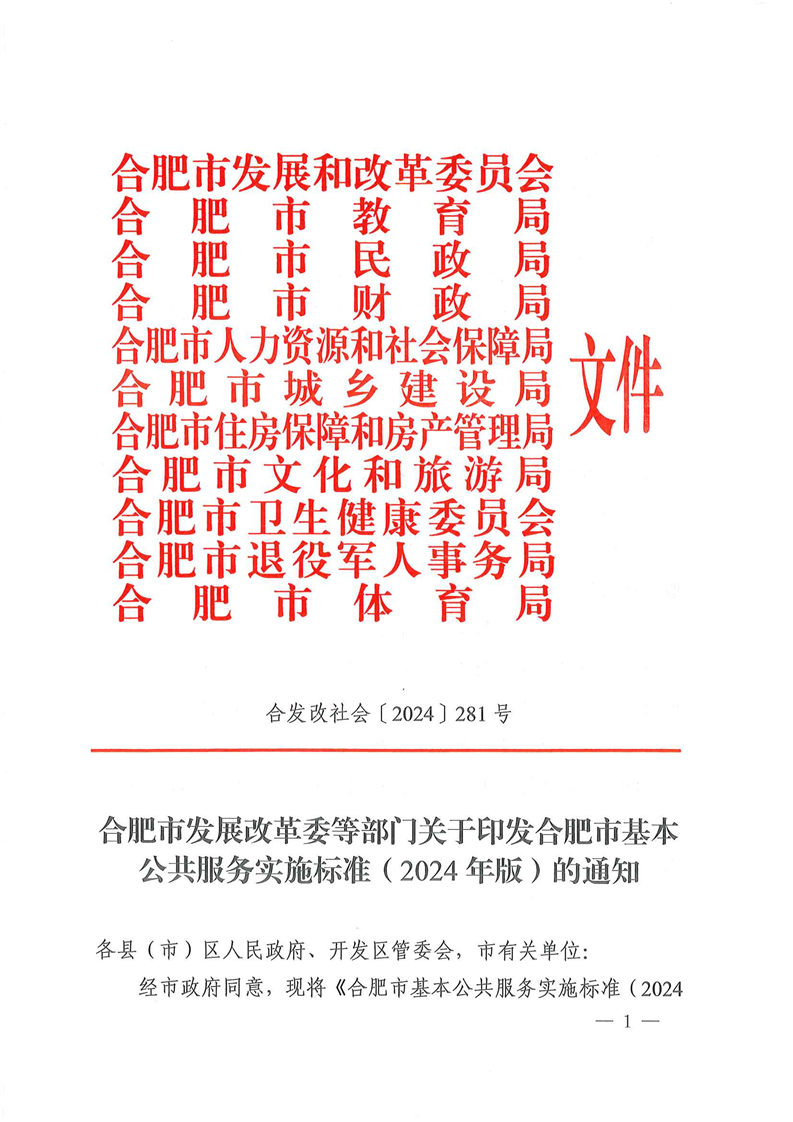 合肥市发展改革委等部门关于印发合肥市基本公共服务实施标准(2024年版)的通知