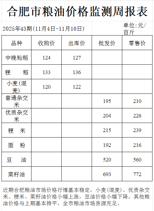 合肥市粮油市场一周价格202543期 |