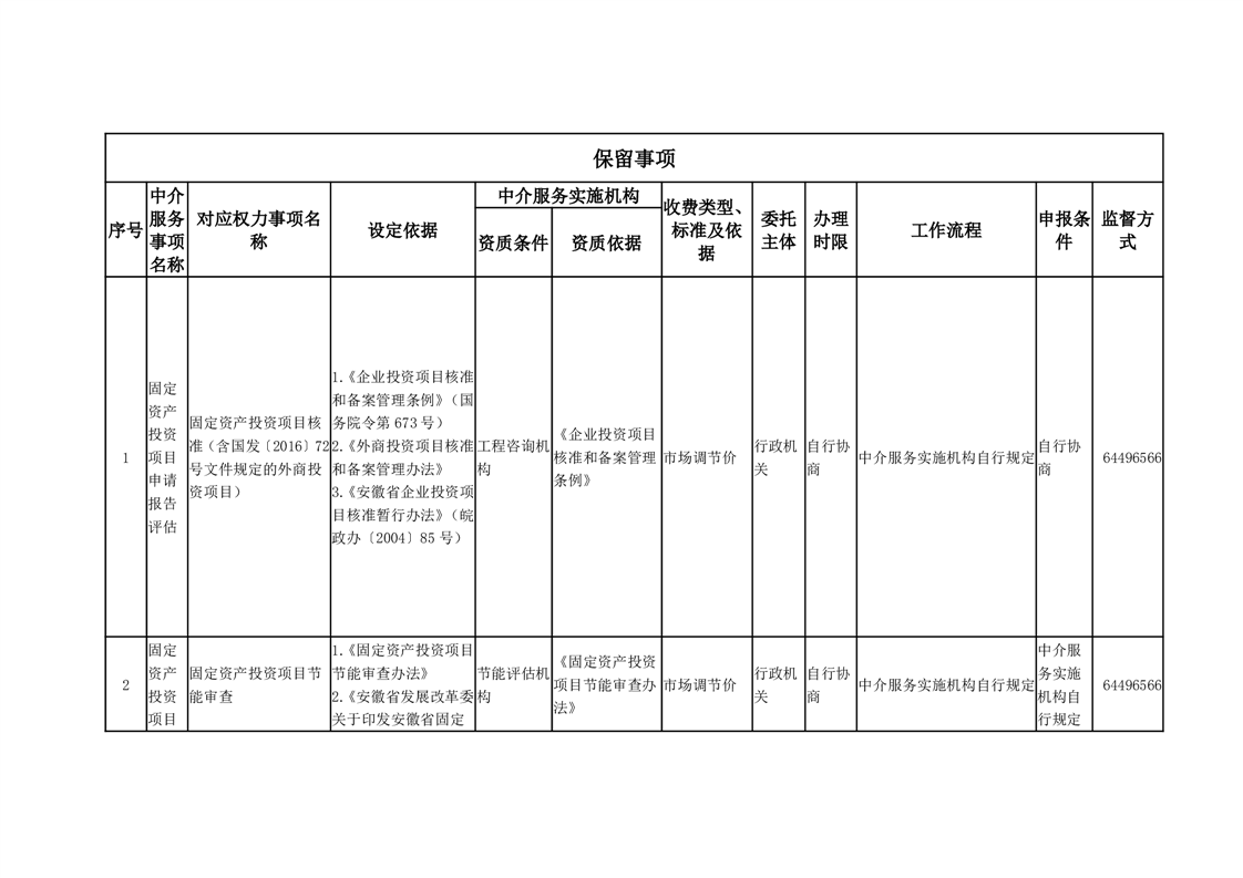 公共服务和中介服务清单 |