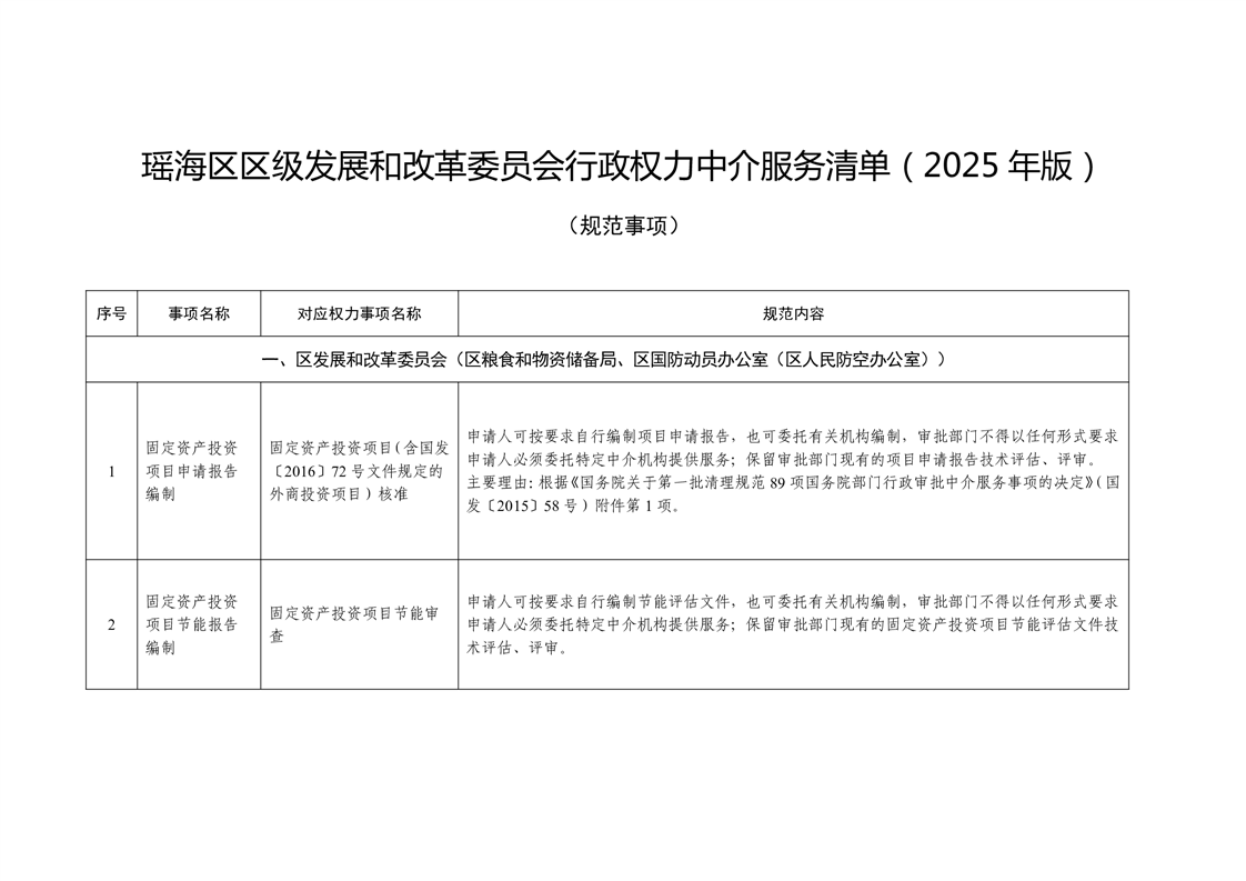 瑶海区发展和改革委员会行政权力中介服务清单(2025年版) |
