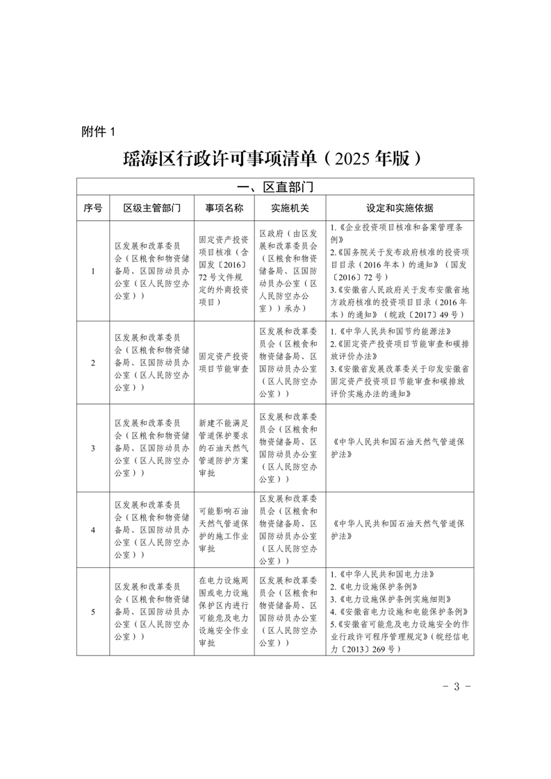 瑶海区发展和改革委员会行政许可事项清单(2025年版)) |