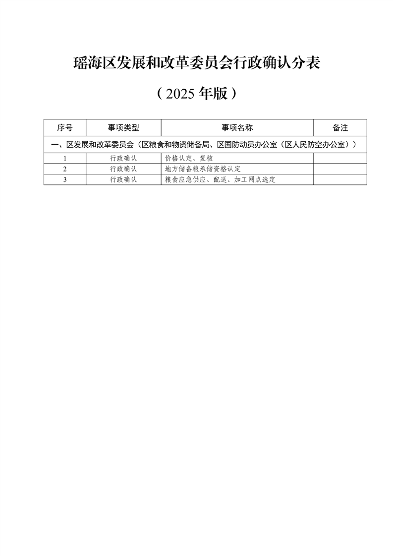 瑶海区发改委2025年行政确认分表(2025版) |