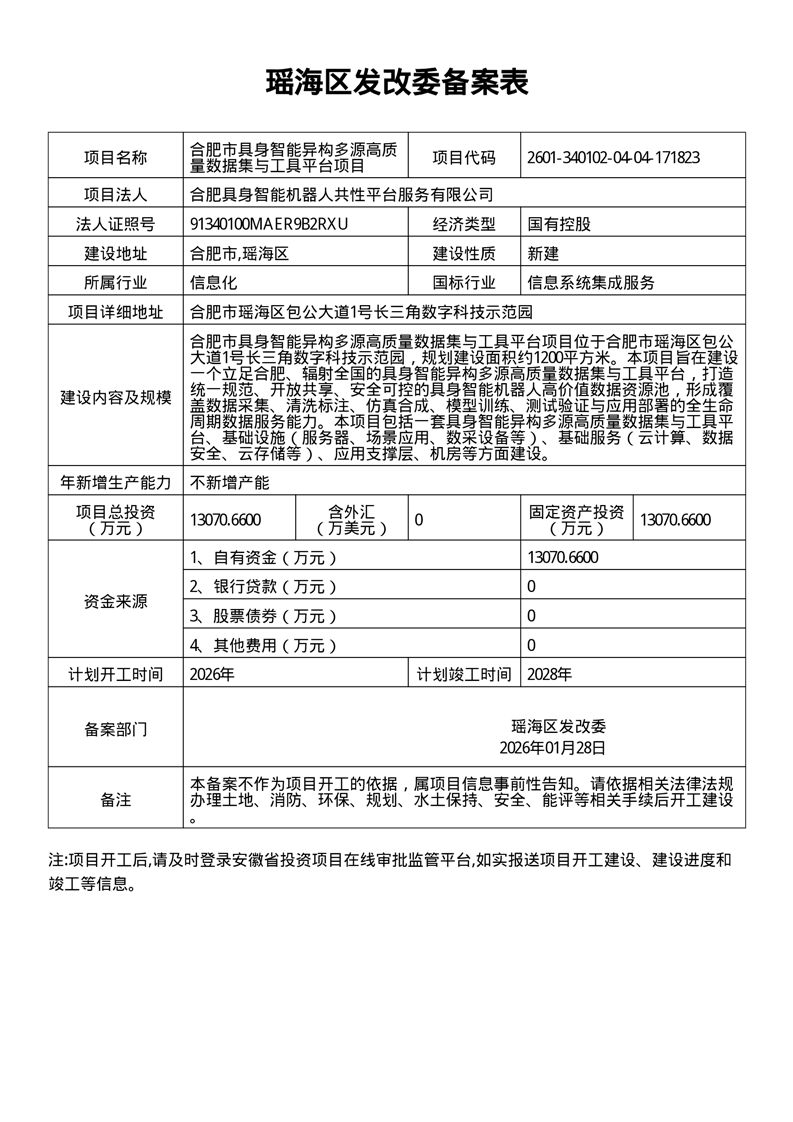 合肥市具身智能异构多源高质量数据集与工具平台项目