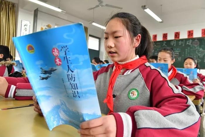 3月1日,在合肥市第五十五中学,学生们正在学习《学生人防知识读本》。该校为七年级全体学生发放省人民防空办公室组织编写的《学生人防知识读本》,并通过班(队)会、综合实践课,为学生们普及系统规范的人防科学知识,强化国防观念和人防意识,全面提高青少年临危应变和自救互救能力。