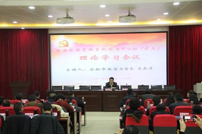 2019年1月25日,瑶海区教育体育局党委中心组(扩大)理论学习会在庐江党校如期举行。局班子成员,局属各单位党政负责人,机关各科室负责人,各督学组长参加学习。学习特邀合肥市教育局局长王杰才做专题报告,会议由局党委书记、局长蒋涛主持。