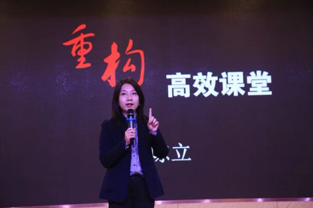 陈立在该校年会上作《重构高效能课堂》的主旨报告。她用“课改的五指操”形象诠释了高效能课堂的本质要求:树立一个观念,即保护儿童、丰富儿童、发展儿童;理清两组关系,即理清讲与教,听与学;用好三个工具,即小组合作学习、学习单、管理评价;提升四种专业素养,即懂学生、懂学习、懂学科、懂课程;把握五大课堂流程。