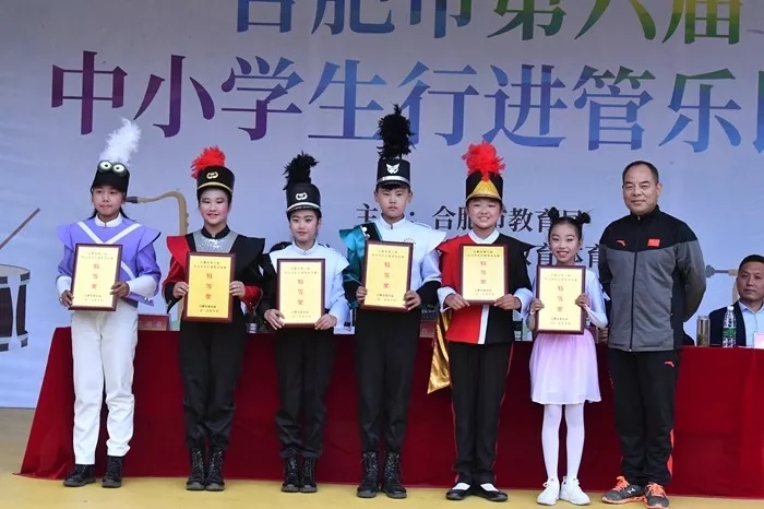 号声嘹亮鼓声响,高亢旋律激情扬。为庆祝中国少先队建队69周年,2018年10月13日,合肥市第六届中小学生行进管乐比赛在合肥市行知学校举行,市教育局副局长桑韧刚、学生事务管理中心主任刘原徽、瑶海区教体局党委委员、合肥市行知学校校长袁方正等领导出席活动现场全程观看展演,并为获奖单位颁奖。