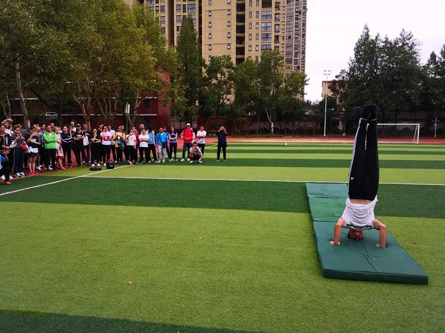 活动中,体育教研员蔡家元首先向大家简短介绍本次教研活动的内容与目的,随后,在合肥市体育教师基本功大赛中荣获一等奖的刘丽、王忠群,二等奖的石东福三位老师进行技能展示,内容包括中小学广播体操、武术操,规定体操动作及自选项目展示。