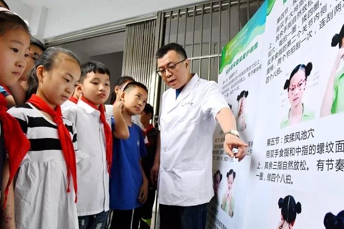 2018年6月5日,在合肥市大通路小学,合肥市第二人民医院眼科医生正为学生们讲解爱眼护眼保健知识。