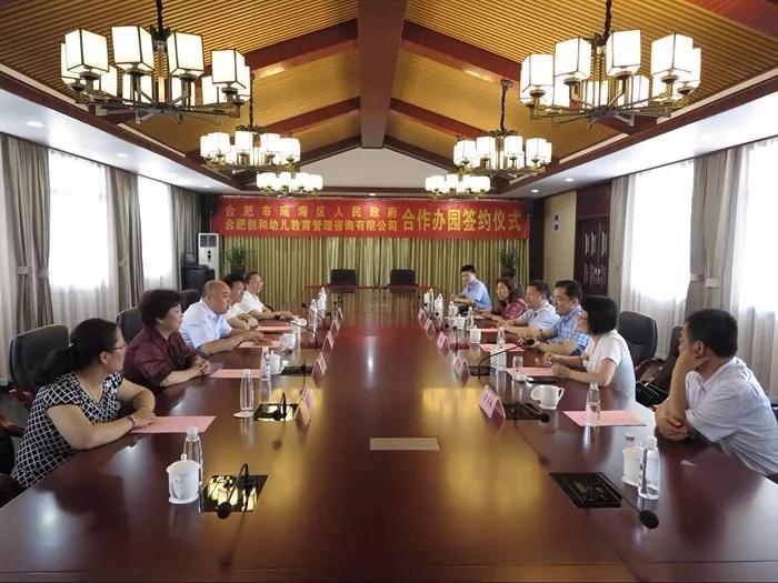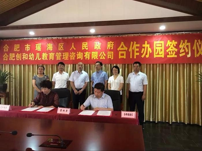 2018年5月16日上午,瑶海区人民政府与合肥创和幼儿教育管理咨询有限公司合作办园签约仪式在创和公司幸福庄园会议室举行。市产投集团党委书记、董事长雍凤山,瑶海区委副书记高强,区政府副区长康震纪,区教体局党委书记、局长蒋涛,副书记李存银出席活动现场。仪式由康震纪主持;蒋涛和创和幼教管理公司经理刘爱莲代表合作双方进行签约。
