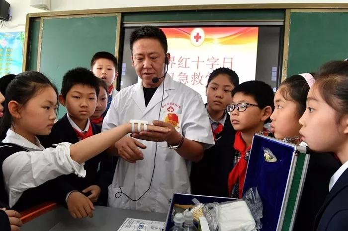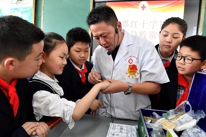 当日,“世界红十字日”到来之际,合肥市香格里拉小学开展“急救知识进校园”主题活动,活动中,专业医护人员现场向学生教授外伤简易包扎、心肺复苏等应急救护技能,普及急救知识,提高学生紧急避险意识和急救能力。