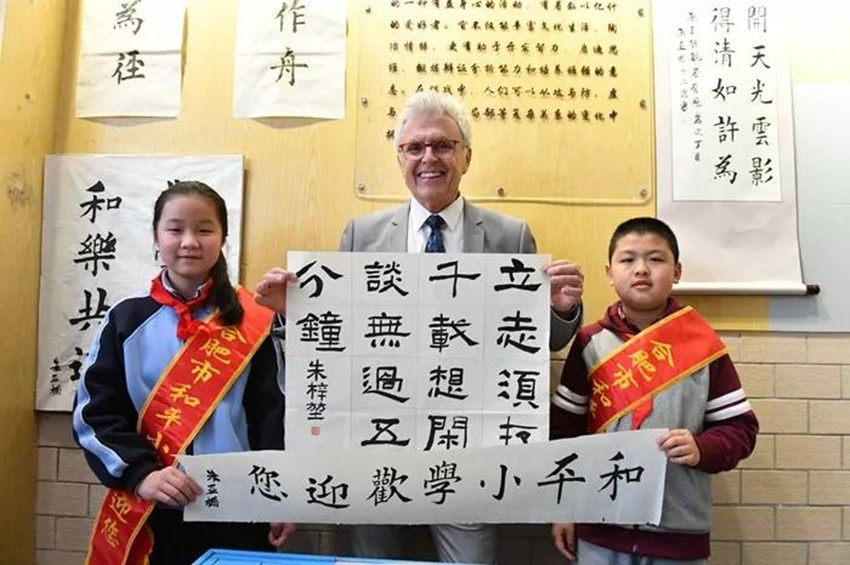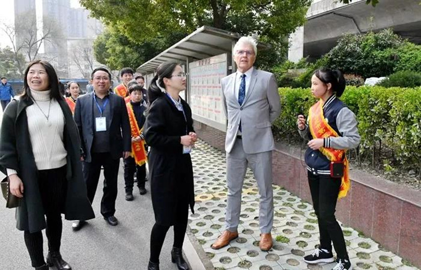 活动中,外国客人饶有兴致地参观了各具特色的校园文化建设,观摩了学校葫芦丝、合唱、机器人、戏曲和舞蹈等学生社团活动,在和平小学,Bob Fitzpatrick还和书法、戏曲社团的学生互动交流,学写毛笔字、学习传统戏曲表演,零距离感受中国文化的魅力。