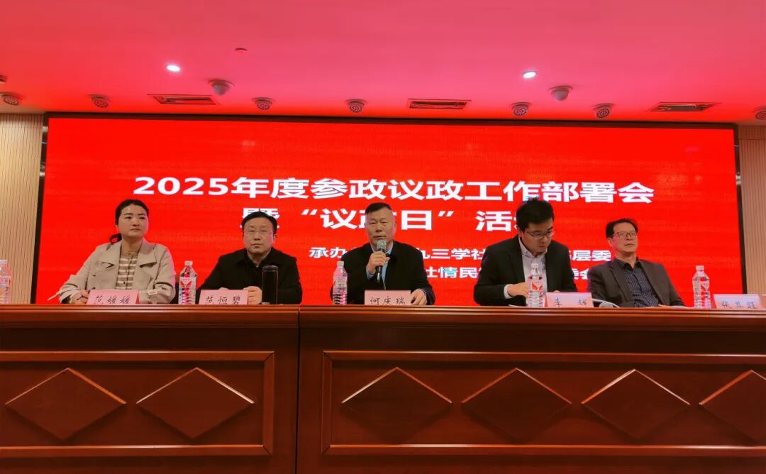 为深入贯彻落实全国两会精神,着力提升参政议政工作能力,3 月 22 日,九三学社合肥市委会联合社省直在肥组织共同举办2025年度参政议政工作部署会暨 “议政日” 活动。九三学社安徽省委会副主委、合肥市政协副主席、九三学社合肥市委会主委何庆瑞,九三学社合肥市委会专职副主委范恒碧,九三学社合肥市委会副主委张其旺,九三学社安徽省委会参政议政三级调研员李辉参加会议。九三学社合肥市委会与社省直在肥组织相关负责人、参政议政骨干等 160 余人齐聚一堂,共商履职大计。九三学社合肥市委会秘书长范媛媛主持会议。