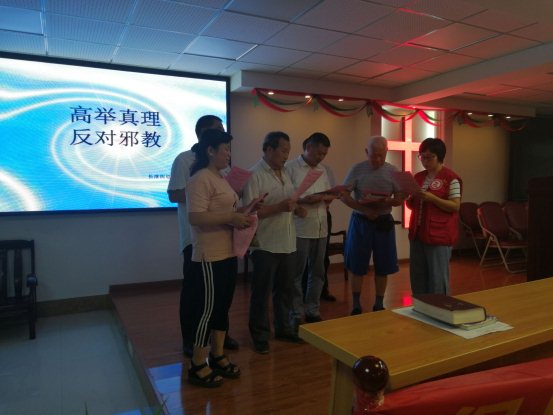 7月25日下午,长淮街道组织火车站广场社区在胜利广场基督教会开展了以“倡导科学生活方式、拒绝一切邪教活动”为主题的防邪反邪警示宣传活动。