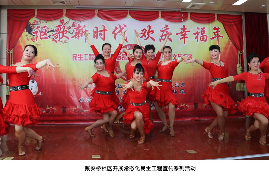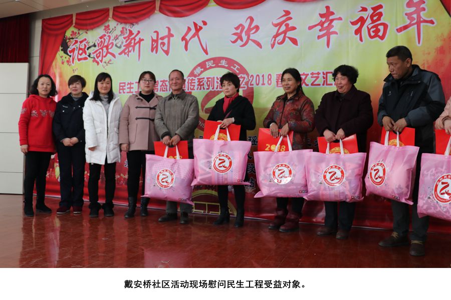 2018年2月11日,戴安桥社区开启2018年民生工程常态化宣传系列活动,活动当天主题为“讴歌新时代 欢庆幸福年”,社区邀请民生工程共建单位、辖区民生工程受益对象共同参与,现场约200余人。活动内容包括十九大报告、民生工程知识有奖问答,民生工程真情告白、合唱《民生工程暖人心》等内容,紧凑的节目安排,引的现场一阵阵掌声。