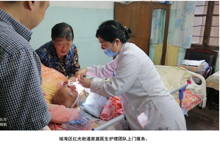 今年的3月份,不巧老伴又突然摔倒骨折,我和家人赶紧送他去了医院。处理骨折时,医生发现他还有严重的肺部感染,人也昏迷了过去。由于几乎没有了意识,医生给老伴做了气管切开处理,出院后只能通过插胃管来进食。老伴上了年纪,现在体质又非常糟糕,去医院治疗、护理十分不方便。特别是经过这样连续的折腾,最近我高血压症状更明显了,身体大不如前,简直是雪上加霜。正在我们为后续护理治疗不知所措的时候,红光街道社区卫生服务中心的葛玉霞医生和他的家庭医生团队给我们解决了大问题!