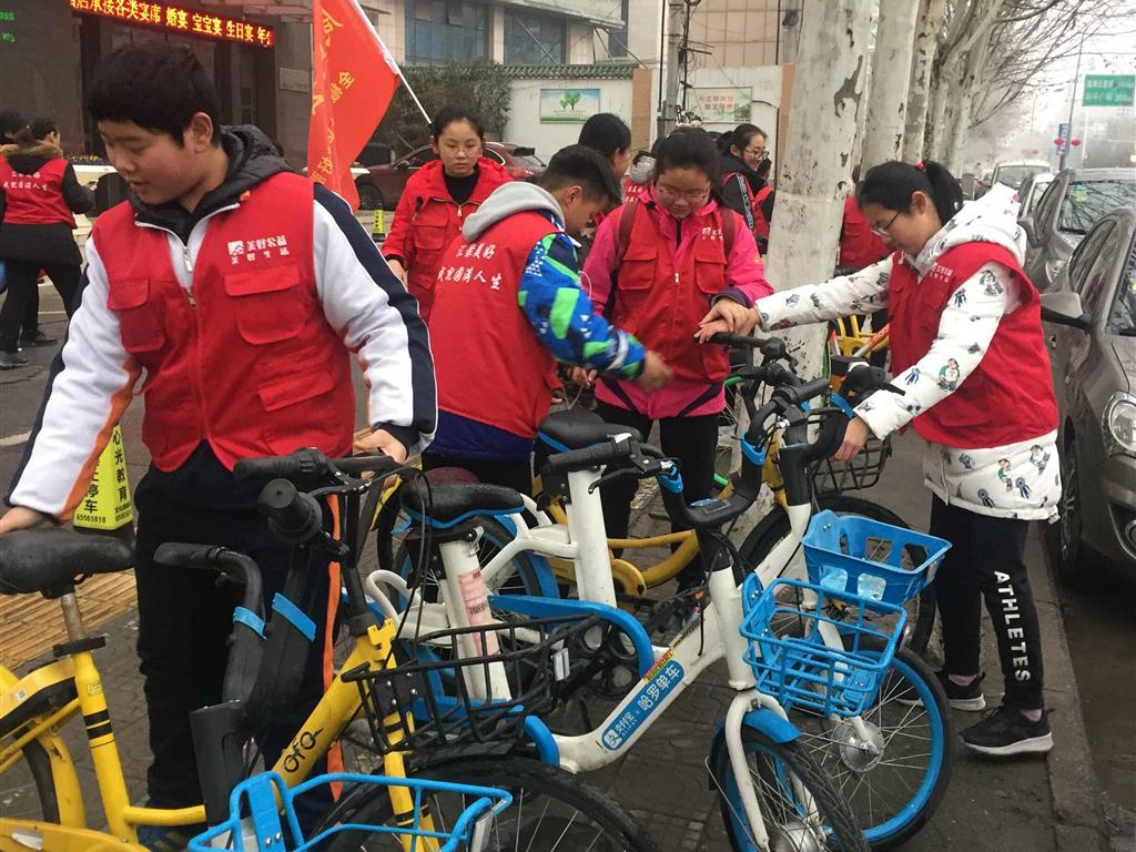 活动当天,天气寒冷,中学生志愿者们准时在社区志愿服务中心门口集合,统一着装,头戴帽子,沿着一环路、明光路开展志愿服务活动。活动中,志愿者们积极参与,克服困难,将每一辆共享单车整齐摆放,整理成排。志愿者们纷纷表示,本次整理共享单车志愿服务活动将共享文明、绿色出行的健康理念传递出去,引导大家文明用车、文明停车,让社会刮起文明之风。