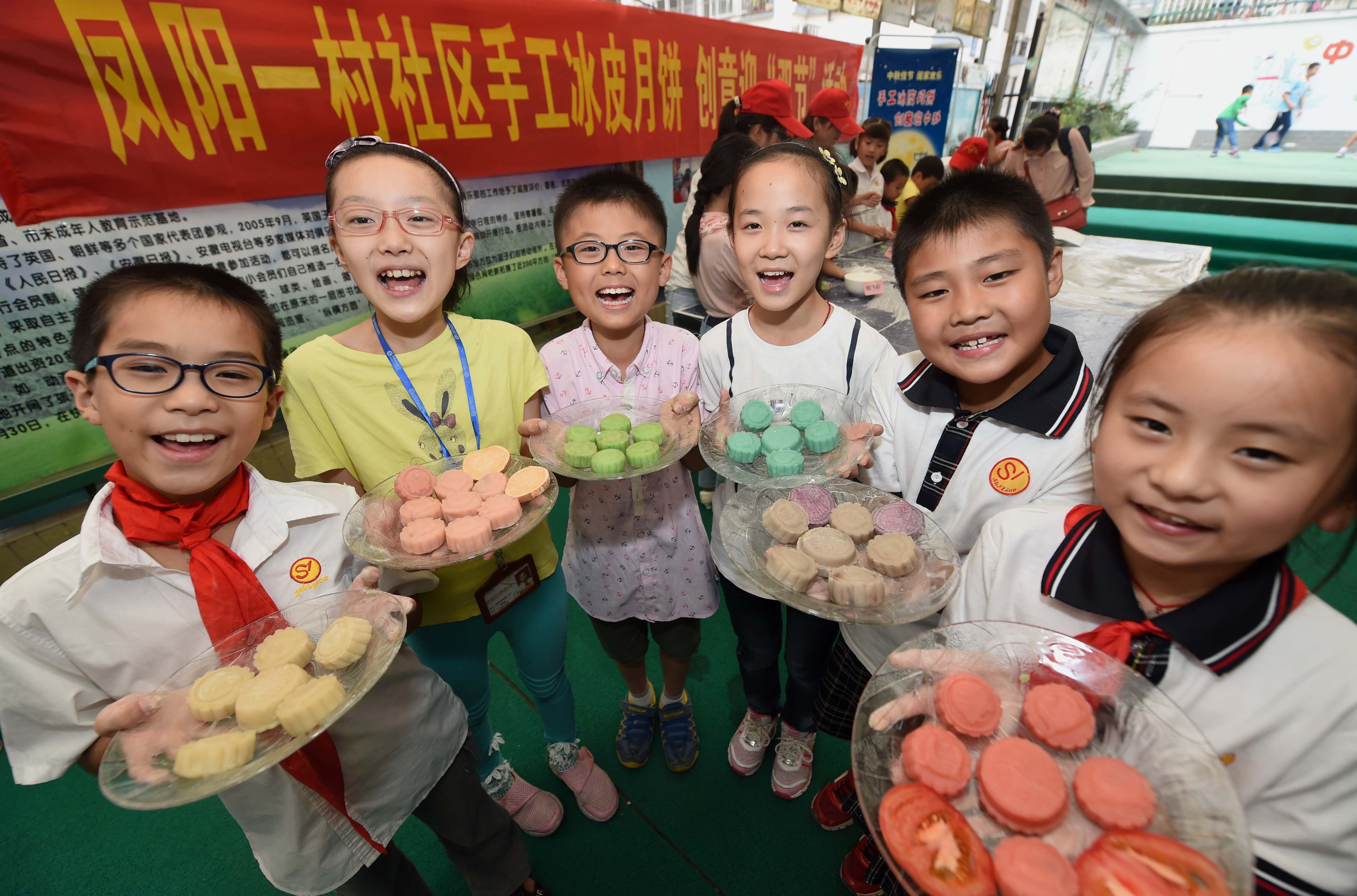 9月21日,凤阳一村社区流动儿童俱乐部开展“自制五色月饼 创意迎中秋”活动。活动中,来自安徽大学江淮学院环境保护协会的大学生志愿者们和社区流动儿童一起利用各种绿色蔬菜制作出五颜六色的创意月饼,喜迎中秋佳节的到来。