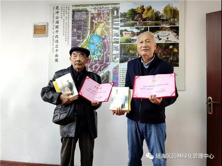 对于两位热心老人发自内心的赞扬和对花冲公园由衷的热爱,经瑶海区公园管理处研究,决定授予两位老同志“名誉园长”称号。 10月17日上午,瑶海区园林绿化管理中心公园管理处程庆东副主任为杨圣祥和韩福根两位老人颁发“名誉园长”证书,并赠予两位老同志《平易近人》、《知之深爱之切》《新中国发展面对面》及《习近平新时代中国特色社会主义思想学习纲要》等书籍。感谢两位老人对公园的支持,也欢迎两位老人今后能多来公园,为公园的发展提言献策。