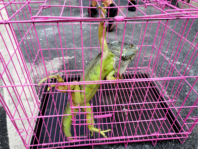 林业科工作人员到现场后发现,消防员用筐盖住该动物,防止其爬出。经检查,该动物为绿鬣蜥,系国家二级保护动物,体况良好。我局林业科工作人员接收后转交至合肥市野生动物园爬行馆。