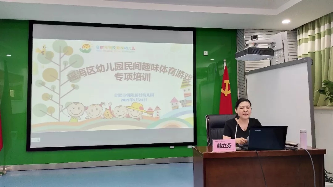 5月23日,瑶海区幼儿园民间趣味体育游戏专项培训在铜陵新村幼儿园举行,瑶海区教体局教研室幼教教研员面向全区幼儿园教师做了题为《弘扬传统文化 体验游戏快乐》专题讲座。