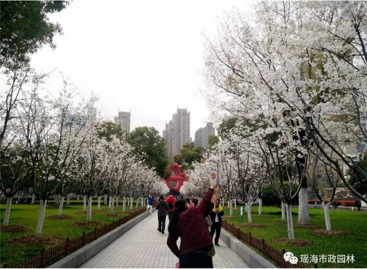 广场的轴线通道种上樱花,打造一条樱花大道。增加樱花大道与广大市民见面以来,樱花大道已经成为每年春天拍照的网红打卡地。