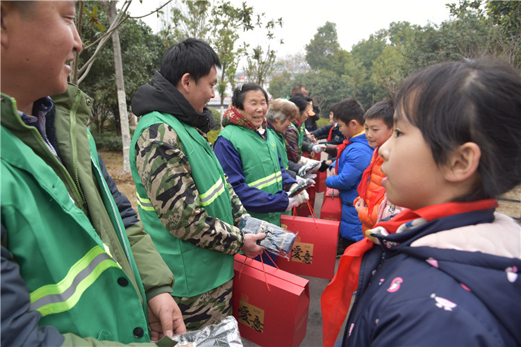 体验结束后,孩子们将带来的节日慰问品赠送给一线绿化工人:“这次活动,不仅让我们学到了绿化知识,也让我们感受到了绿化工作的辛苦,今后一定要更加爱绿护绿,保护我们的城市环境。”