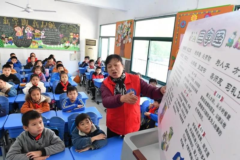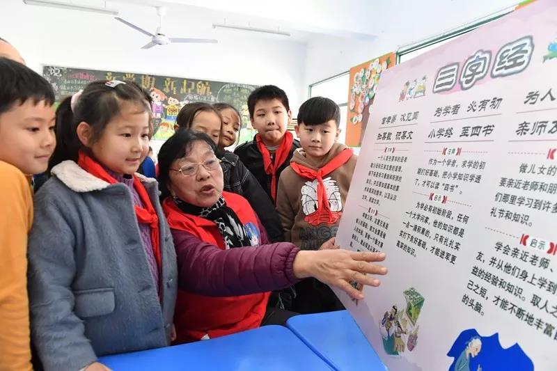 11月22日,在合肥市滁州路小学,填海巷社区慈善大食堂义工张雪凤正在为学生们宣讲“孝道三字经”,弘扬中华孝道文化。 当日,瑶海区教育团工委邀请填海巷社区慈善大食堂义工张雪凤走进滁州路小学为学生们宣讲“孝道三字经”,教育和引导他们学会感恩,孝敬长辈,增强家庭美德观念,弘扬中华孝道文化,传承优良家风家训。