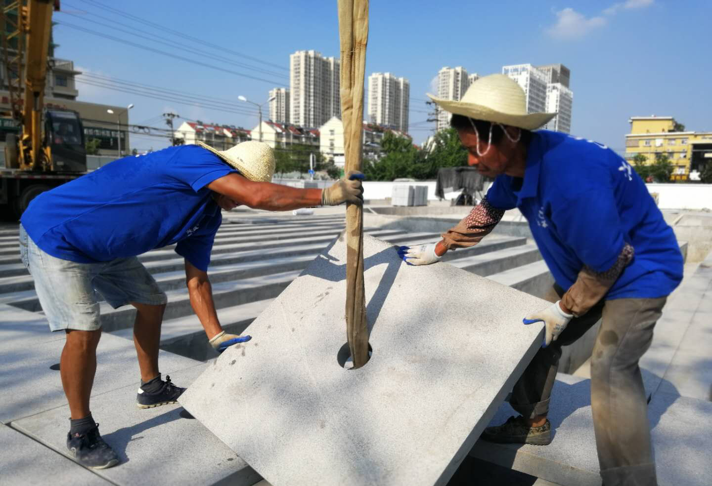 丁如良,花冲公园提升改造项目的一位施工人员,40多岁的他有着丰富的园建施工经验,施工现场他告诉我们:“花冲公园提升改造项目,包含土建、房建、景观绿化等方面,工序复杂,涉及隐蔽工程及特殊作业,必要时工人要加班加点完成施工。我们每天早上五点半就上班了,一天要连续工作8小时,目前,花冲公园提升改造项目正在围绕北广场进行施工,确保国庆节前北广场全面竣工。现场,丁师傅正在进行广场基础砼混合料浇筑和收浆工作,并用麻袋进行全面覆盖,不间断洒水保持湿润,确保成型后2到3小时物触无痕迹。