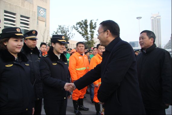 1月30日,区长单虎来到合肥火车站南广场慰问连日来奋战在“抗雪”一线的广大交警、城管队员、环卫工人及市政园林工作者,向奋斗在抗雪一线的工作者们表示衷心的感谢。单虎亲切地同工作者们一一握手致谢并送上大米、食用油、鲜奶等慰问品,详细询问了工作情况和身体状况,叮嘱注意自身安全。