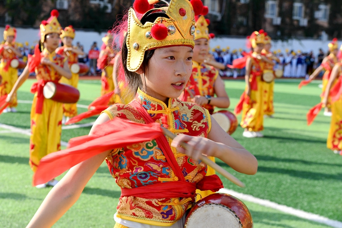 活动在有序而庄严的大队仪式中拉开帷幕,在鲜艳队旗的引领下,来自全区中小学13支民乐团和鼓管乐队近800名学生进行了腰鼓、非洲鼓、管乐等团体器乐演奏,展现少先队员们健康活泼、朝气蓬勃的精神面貌,表达少先队员对祖国的祝福,共同迎接中国少年先锋队的建队日。