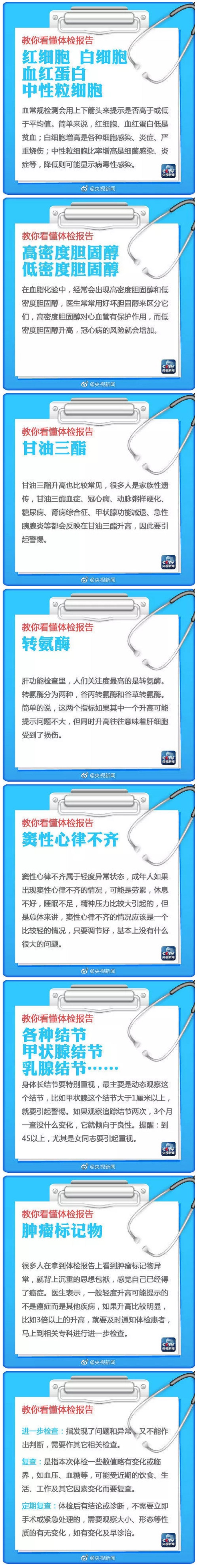 体检报告中的红细胞、白细胞、血红蛋白、胆固醇、甘油三酯、窦性心律不齐……这些你会看吗?8张图帮你秒懂“体检报告”!