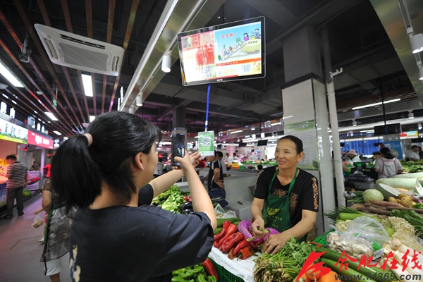 “明皇菜市场项目的建成试营业,将加快推进合肥龙岗开发区菜市场升级改造步伐,快捷的支付手段、即时的数据追溯、高效及智慧管理,绝对公平公开的交易环境,切实保障新站区农副产品供应、食品安全及价格稳定,同时提升“小市场”服务“大民生”水平”合肥百大·合家悦菜市场项目组业务负责人王伟告诉记者。