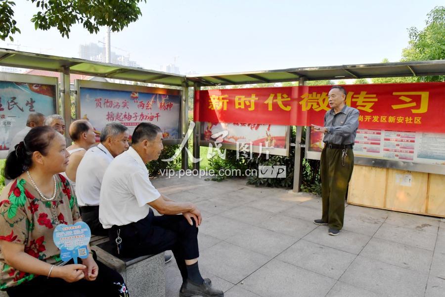 合肥龙岗开发区新安社区聘请由老干部、老战士、老专家、老教师和老模范组成的“五老”宣讲小分队,走进社区广场、街头公园,通过互动式座谈、问答式阐释、走访式唠嗑等平等化交流,宣讲党的方针政策、历史文化传统、家风家规家训,传播正能量,深受群众欢迎。