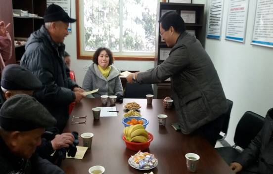 座谈会结束后,区国资公司领导一行在社区工作人员的指引下来到10户困难群众家中,带着诚心、爱心、孝心去充分表达党和政府对他们的温暖和关爱,并送去了慰问金,与他们聊一聊生活情况,谈一谈党的政策,并鼓励他们要树立信心,同时送上新春祝福。